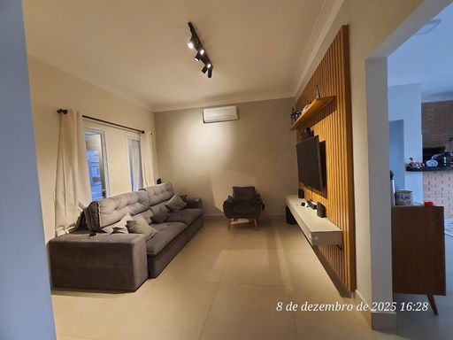 Em meio à exclusividade e à tranquilidade do Condomínio Fazenda Dona Carolina, esta residência de alto padrão se destaca por sua arquitetura sofisticada, integração de ambientes e uma vista privilegiada permanente que transforma cada dia em uma experiência única. Construída em um terreno de 1.294 m², com 654 m² de área construída e uma fachada imponente de 42 metros voltada para uma rua tranquila a menos de 400 metros do clube, a casa combina elegância, conforto e funcionalidade em cada detalhe. O projeto semi térreo valoriza a amplitude dos espaços e a integração entre as áreas internas e externas, proporcionando uma atmosfera acolhedora e moderna. São quatro suítes, sendo uma master com banho espaçoso e banheira de imersão, além de um home theater perfeito para momentos de lazer e descanso em família. A área social, equipada com ar-condicionado dutado, se conecta harmoniosamente à área gourmet e ao amplo jardim com paisagismo assinado, criando um ambiente ideal para receber amigos e desfrutar de momentos únicos. A área de lazer é um verdadeiro refúgio particular, com piscina aquecida por energia solar, sauna e um espaço externo que valoriza o contato com a natureza. A garagem comporta até seis veículos, sendo três vagas cobertas, e a casa conta ainda com quarto e banheiro de serviço, além de um depósito funcional. Pensada para oferecer o máximo em conforto, praticidade e sustentabilidade, a residência dispõe de infraestrutura para automação completa e aspiração central, sistema de energia fotovoltaica, carregador para carro elétrico, irrigação automática e cisterna para captação de águas pluviais. Esta é uma oportunidade única de viver com qualidade, segurança e sofisticação em um dos condomínios mais exclusivos da região. Agende uma visita e descubra todos os detalhes desta casa excepcional no Condomínio Fazenda Dona Carolina — um lugar onde cada espaço foi projetado para proporcionar o melhor da vida. Renata Coelho - (11) 99544-5425