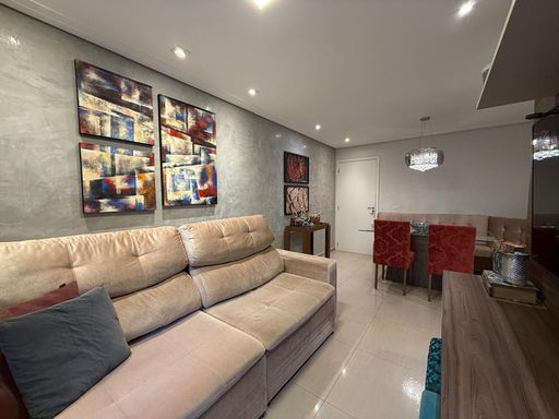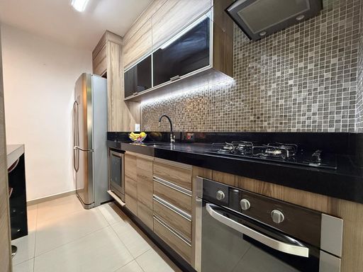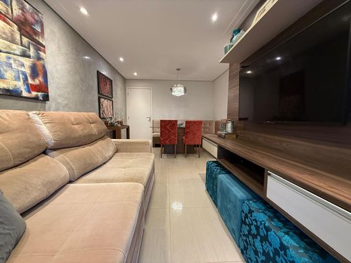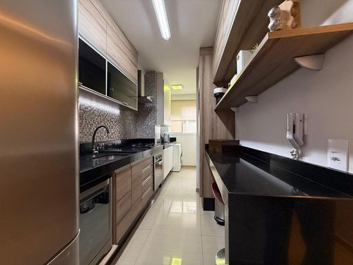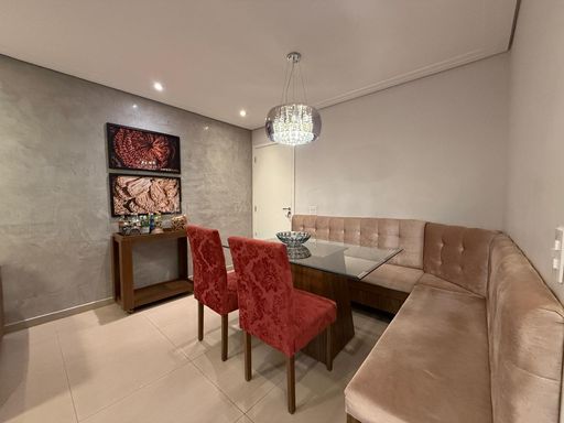 São 69,45m² muito bem distribuídos em 02 dormitórios, sala para 02 ambientes com sacada, cozinha planejada, banheiro, área de serviço e 01 vaga de garagem coberta.