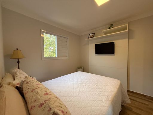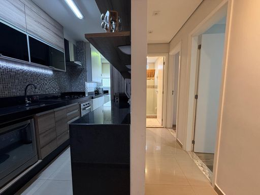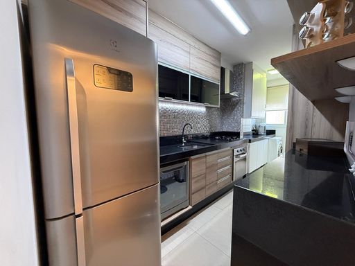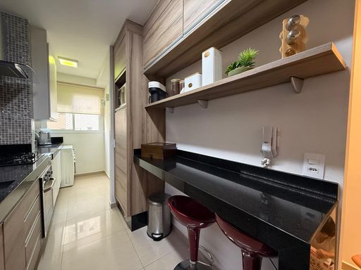 Totalmente mobiliado, com marcenaria completa e acabamentos de excelente padrão! Será entregue com sofá, mesa de jantar e cadeiras, painel de TV na sala e em 01 dormitório, cozinha equipada com cooktop e lava louça, cama de casal, telas de proteção, lustres, luminárias, cortina na sala e persianas nos dormitórios e área de serviço, tudo feito sob medida para o imóvel.