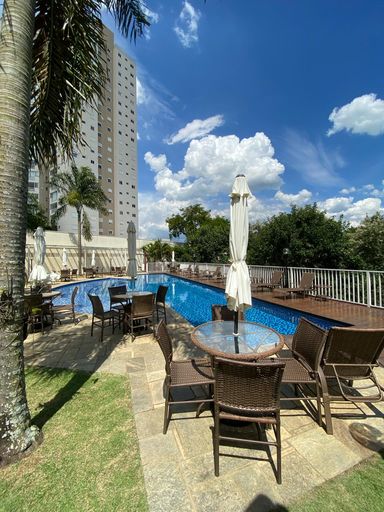 Área de lazer completa: Piscina, churrasqueira, salão de festas, salão de jogos, minimercado, quadra poliesportiva e muito mais!