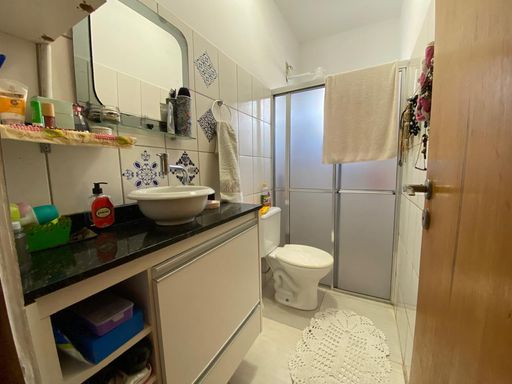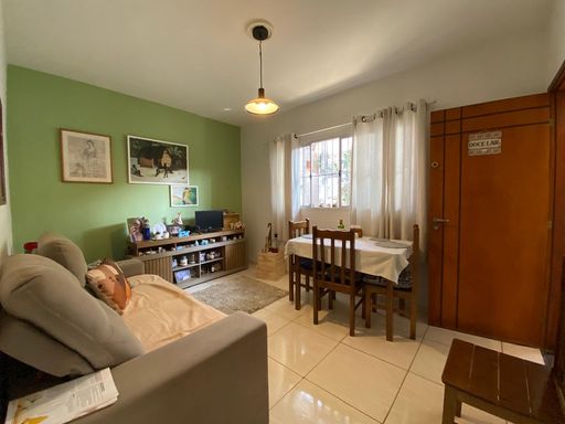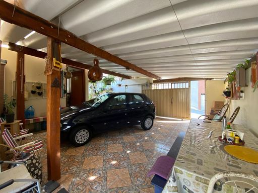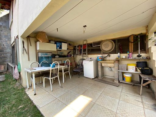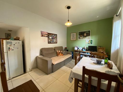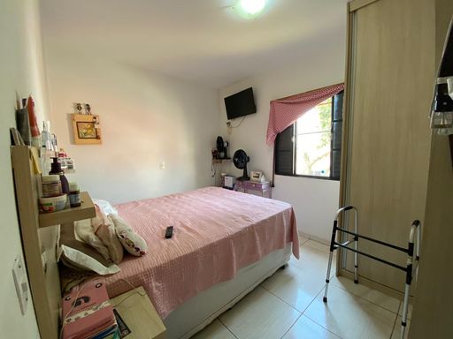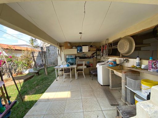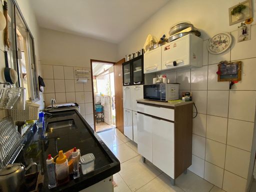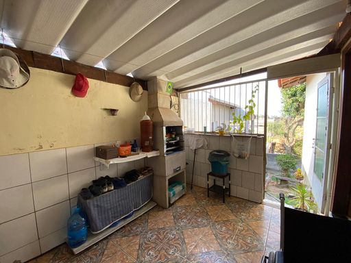 02 dormitórios, sendo 01 suíte, sala, cozinha, banheiro social, área de serviço, garagem coberta para 02 carros, espaço com churrasqueira e amplo quintal.