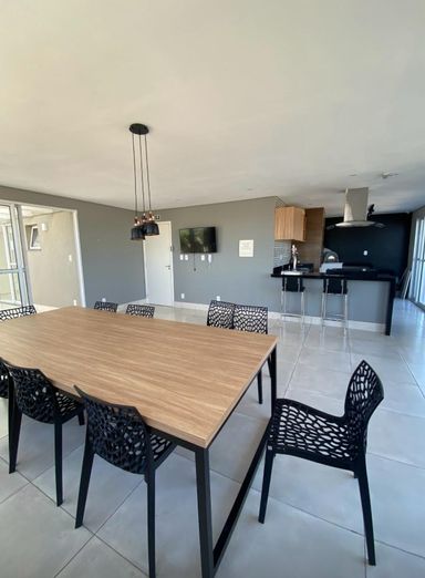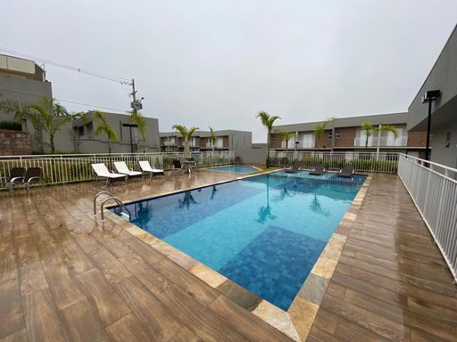 02 dormitórios, sendo 01 suíte, ambos com sacada, sala para 2 ambientes, lavabo, banheiro, cozinha, lavanderia, quintal e 2 vagas de garagem descobertas.