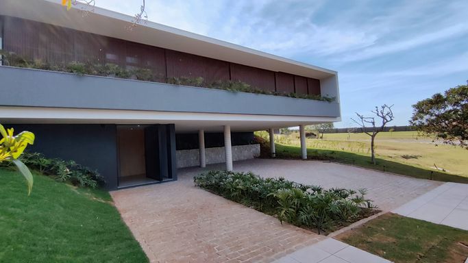 Em meio à exclusividade e à tranquilidade do Condomínio Fazenda Dona Carolina, esta residência de alto padrão se destaca por sua arquitetura sofisticada, integração de ambientes e uma vista privilegiada permanente que transforma cada dia em uma experiência única. Construída em um terreno de 1.294 m², com 654 m² de área construída e uma fachada imponente de 42 metros voltada para uma rua tranquila a menos de 400 metros do clube, a casa combina elegância, conforto e funcionalidade em cada detalhe.
