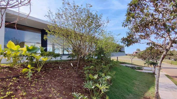 O projeto semi térreo valoriza a amplitude dos espaços e a integração entre as áreas internas e externas, proporcionando uma atmosfera acolhedora e moderna. São quatro suítes, sendo uma master com banho espaçoso e banheira de imersão, além de um home theater perfeito para momentos de lazer e descanso em família. A área social, equipada com ar-condicionado dutado, se conecta harmoniosamente à área gourmet e ao amplo jardim com paisagismo assinado, criando um ambiente ideal para receber amigos e desfrutar de momentos únicos.