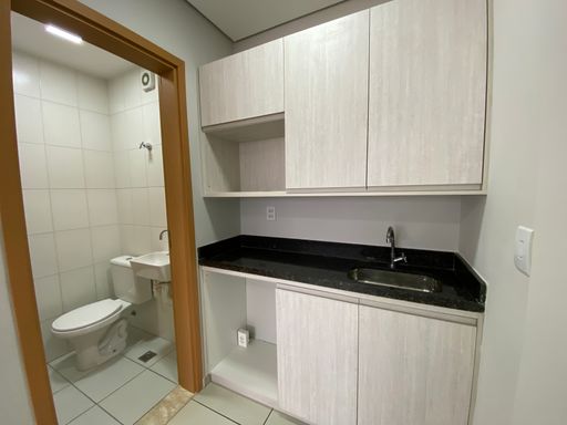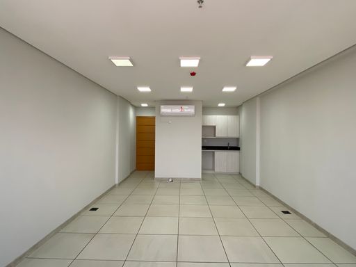 Sala comercial de 37m², copa, 01 banheiro e 02 vagas de garagem.