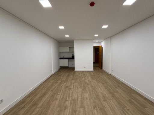 Sala de 37m², copa, banheiro e 01 vaga de garagem.